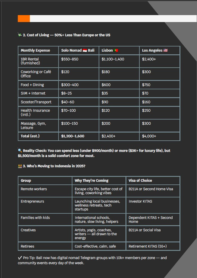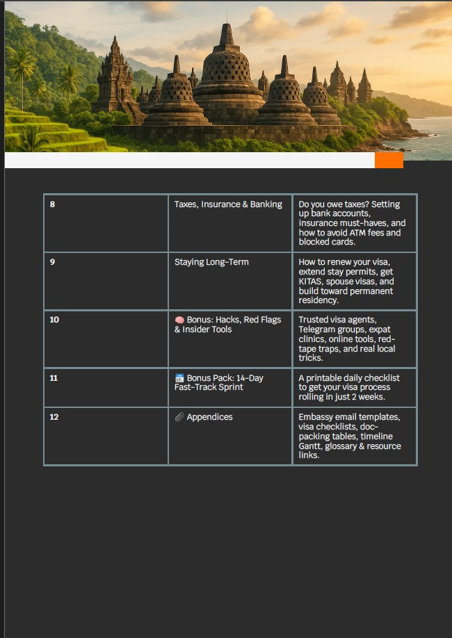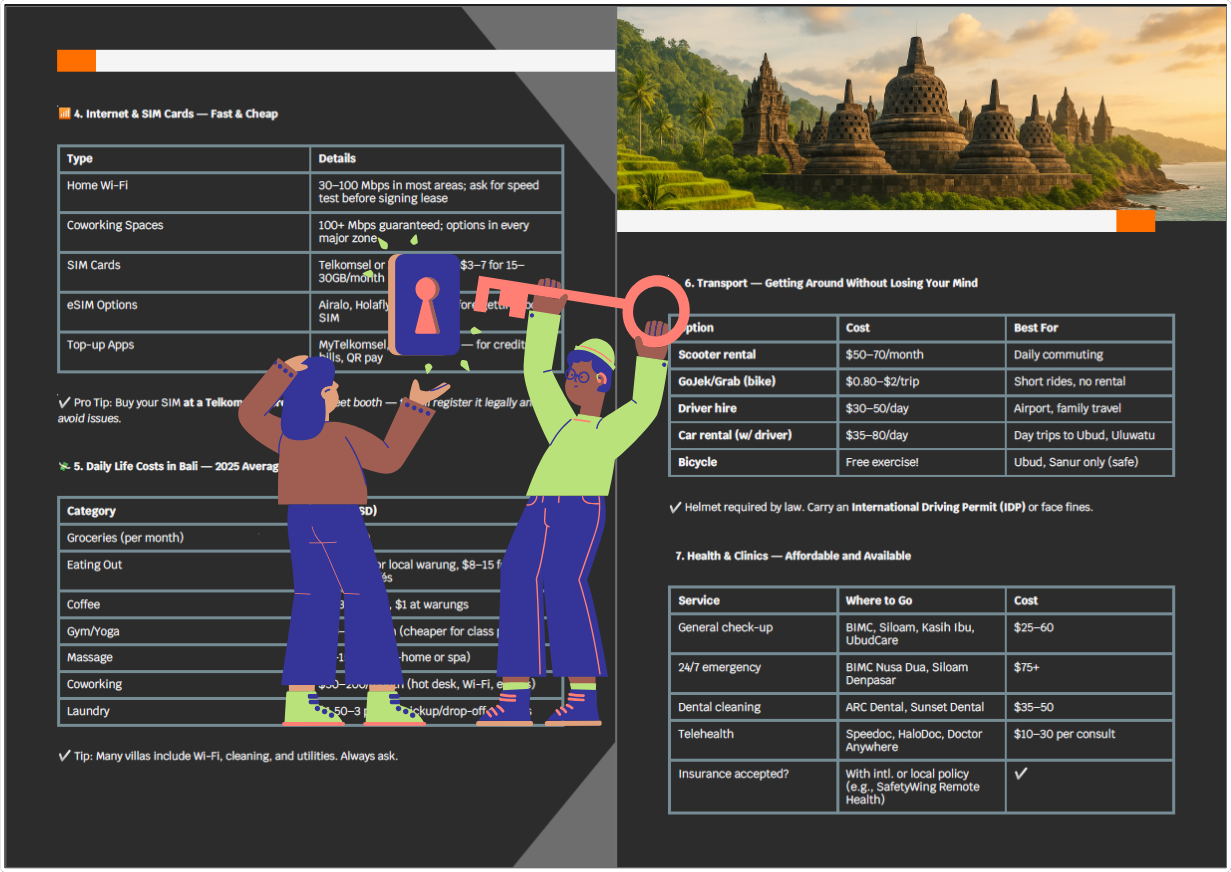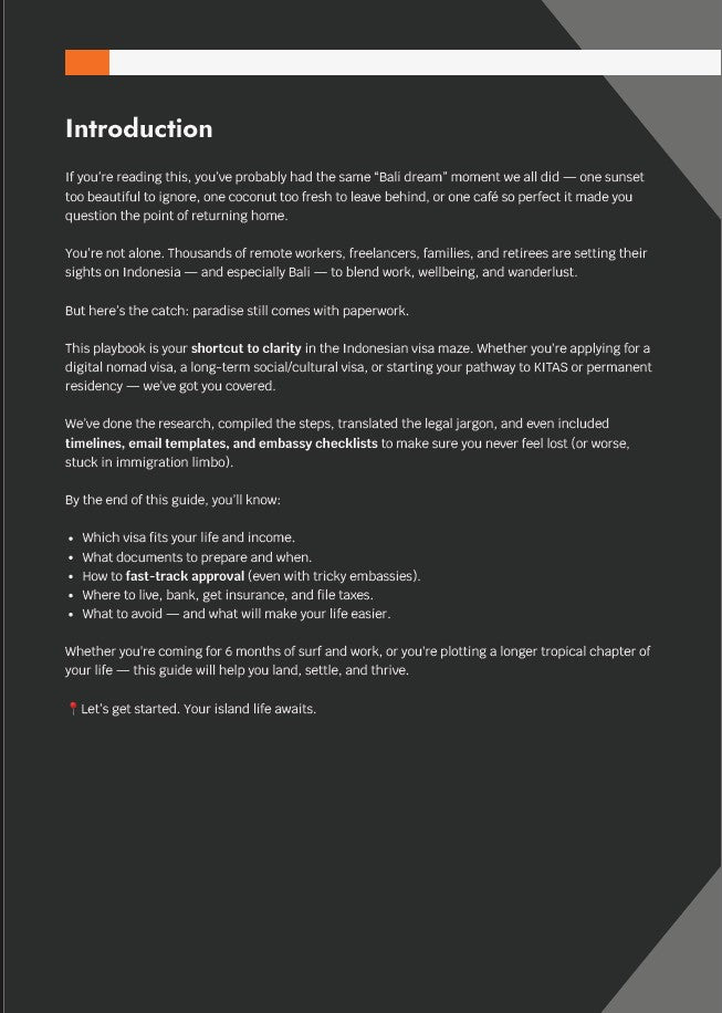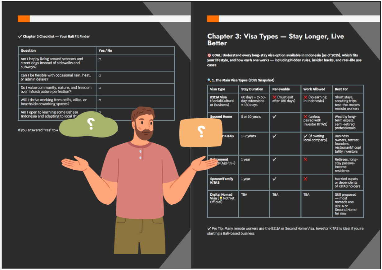 E: I chose Bali, then cross-checked the visa section and used the country-specific guide for Indonesia. It took me 17 days to resign, book my flight, pack, and move. That guide turned months of stress into two weeks of action.