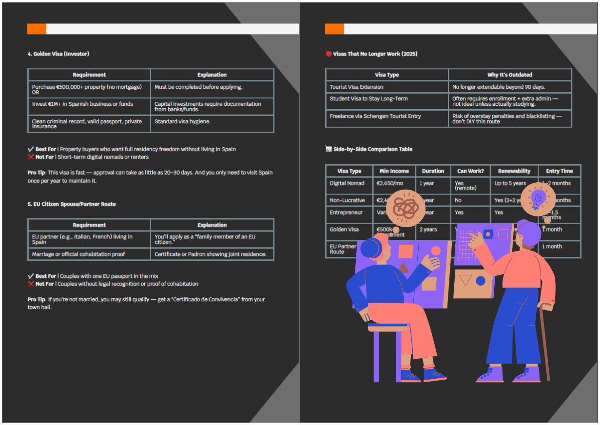 E: A friend in a Slack group dropped the link to the Digital Nomad Way Guide. I wasn’t expecting much. But that guide turned out to be everything I needed. For less than $50, it gave me a clear path: how to choose a country, compare visas, estimate real costs, and even included embassy email templates and a free tax calculator.